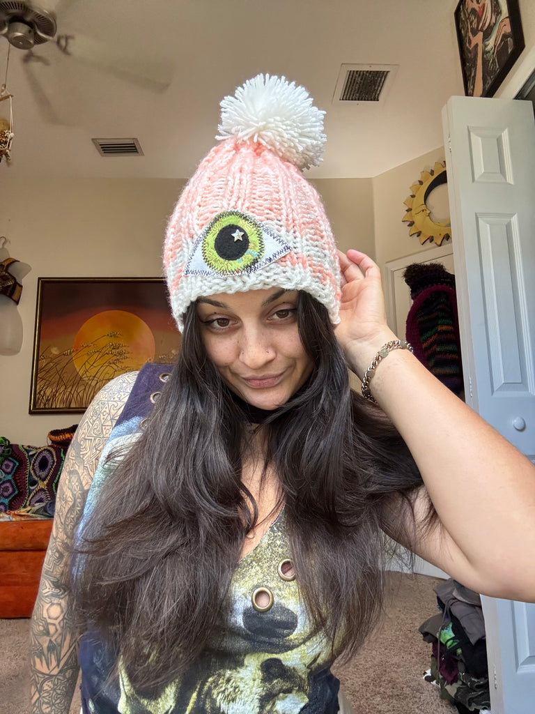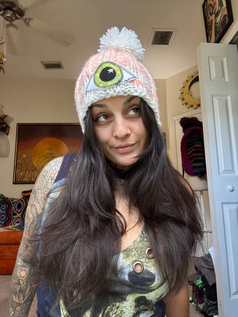 Upcycled 3rd eye beanie! Made from thrifted and reclaimed materials🫶🏽🫶🏽