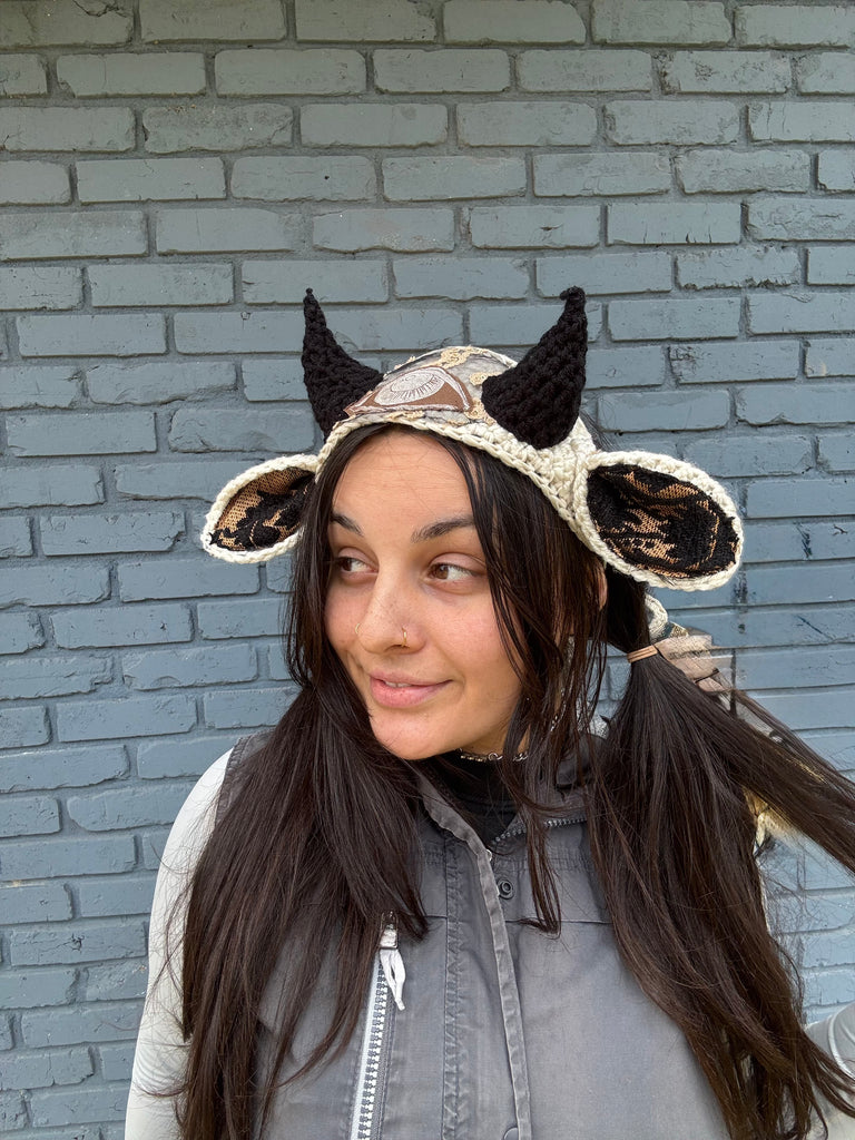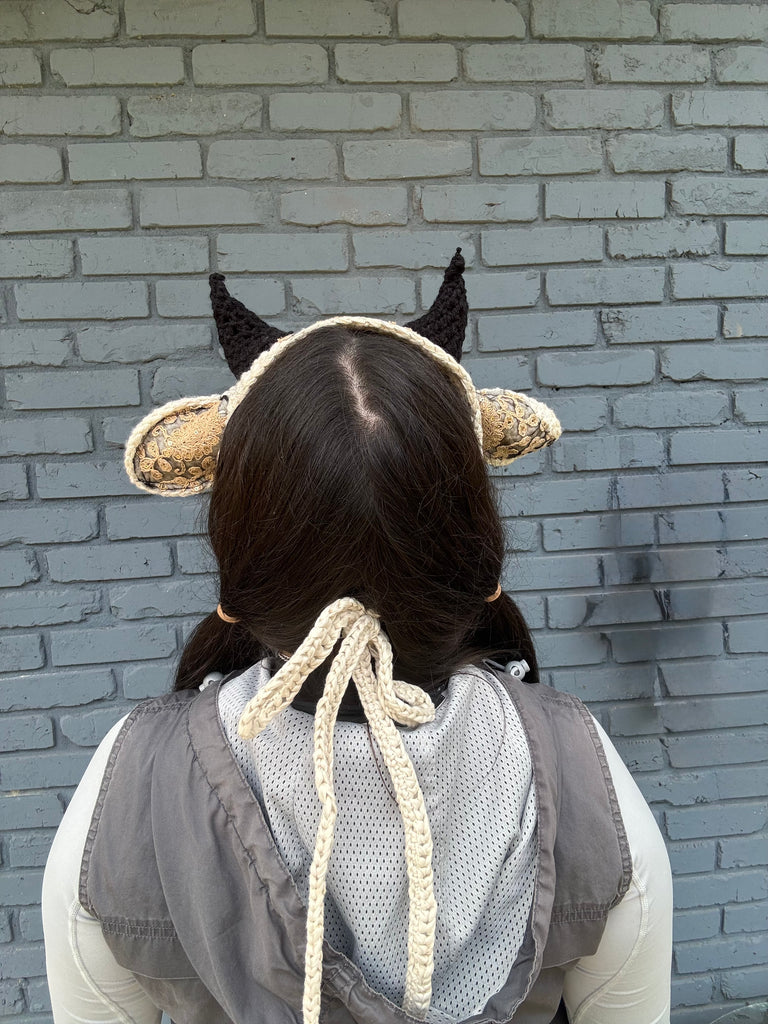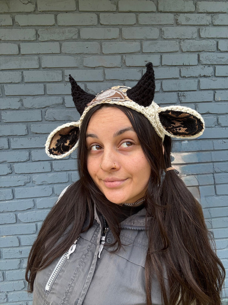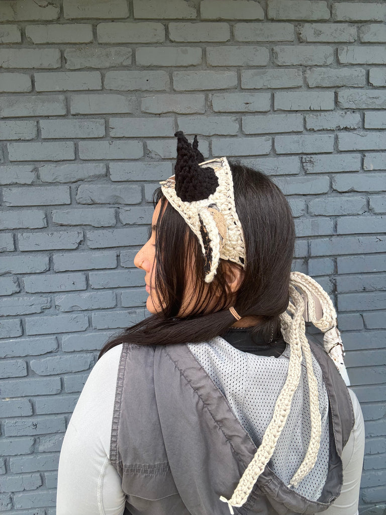 ✨ crocheted creature headband with long thick ties for an adjustable fit!