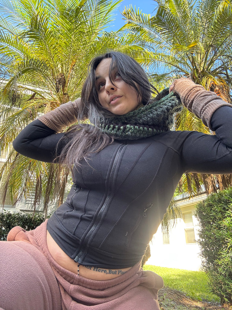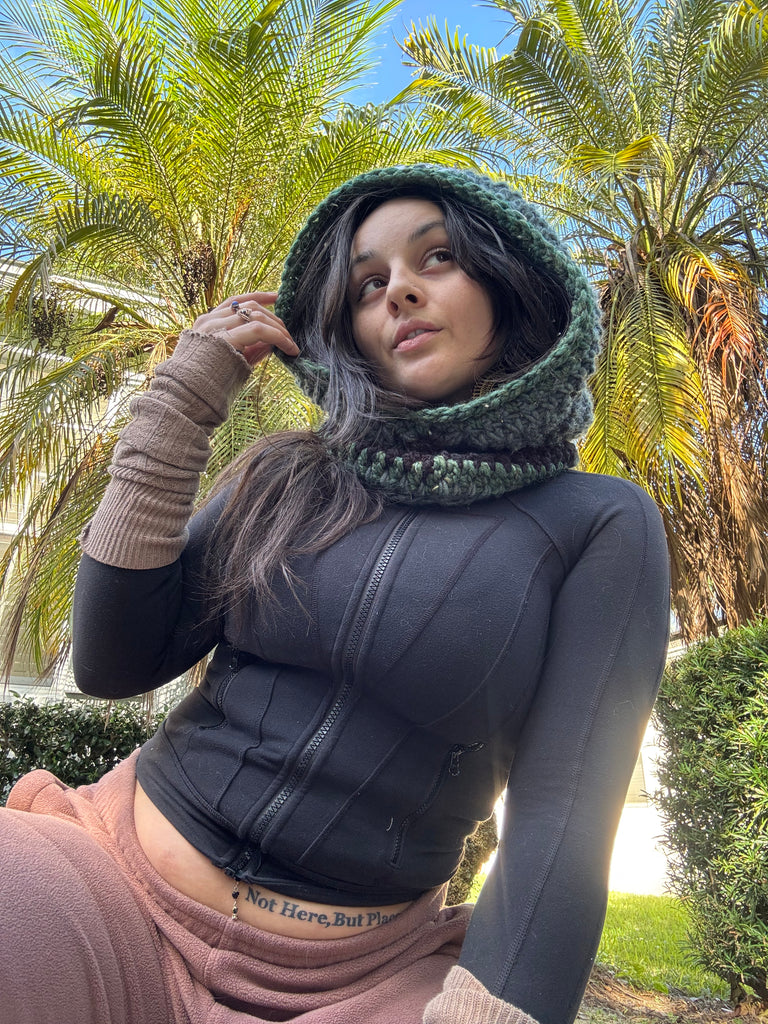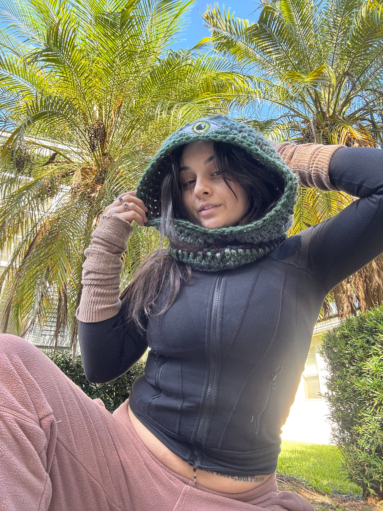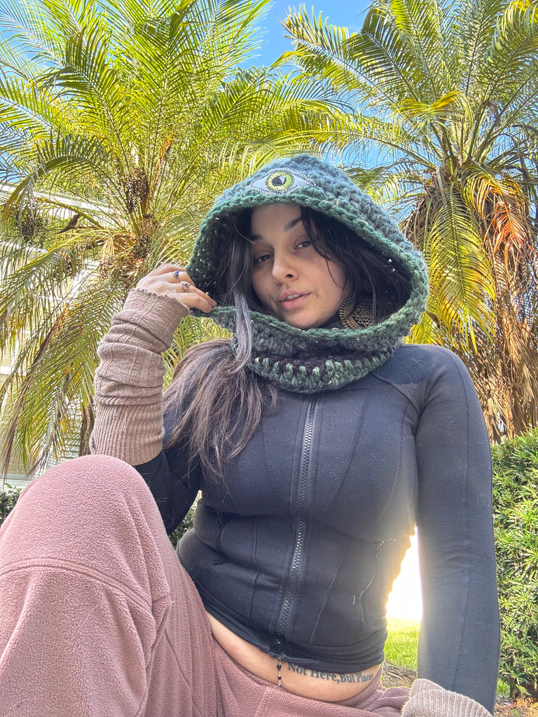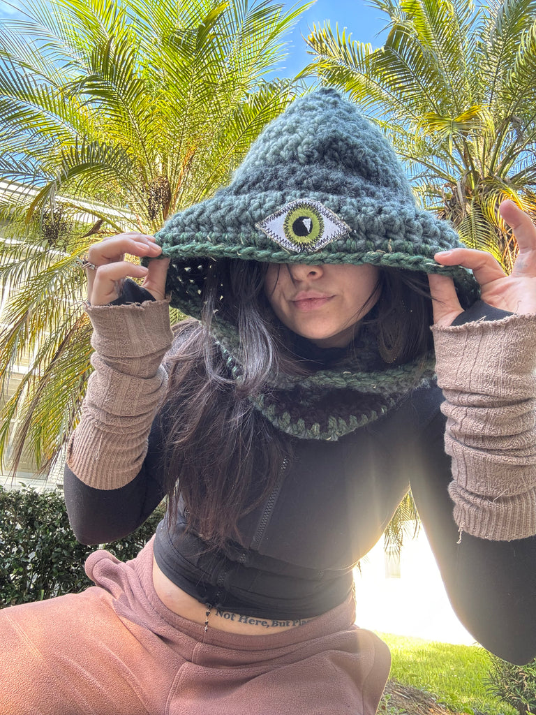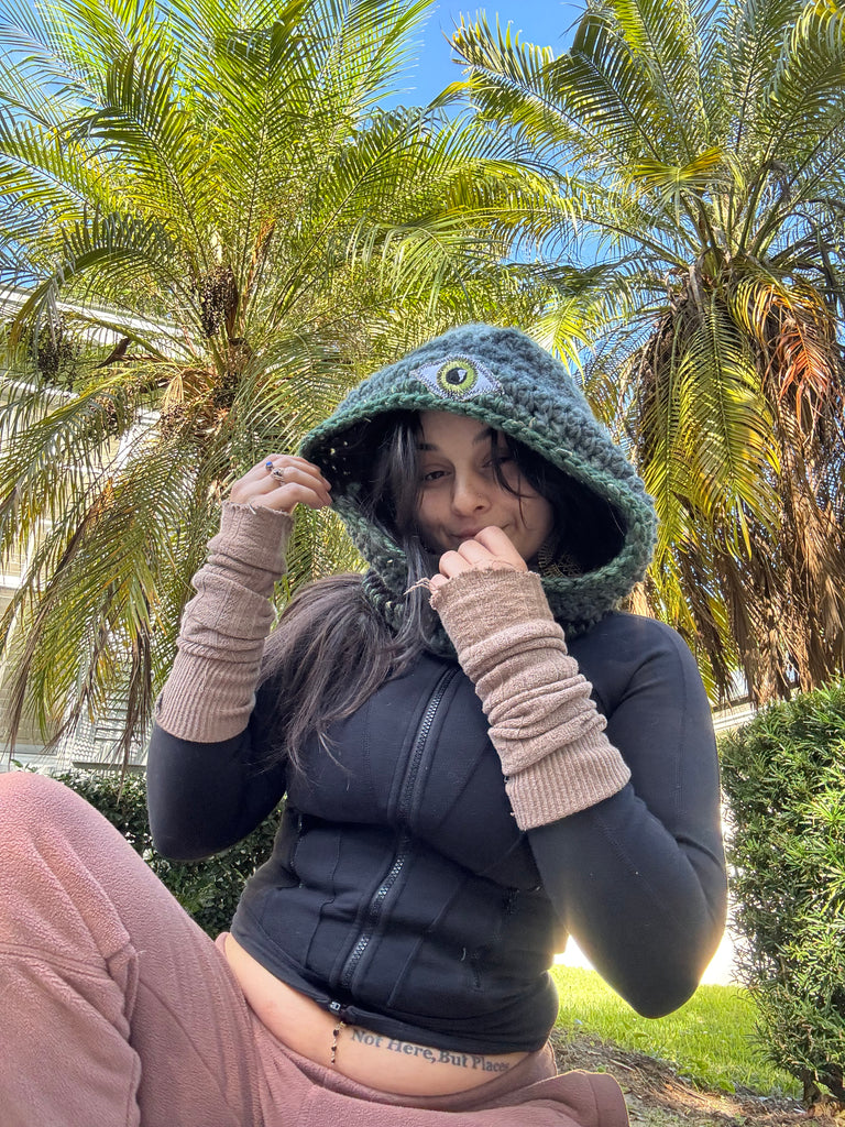 Made from WOOL yarns and a few splashes of acrylic on the edges topped with a little eyeball patch