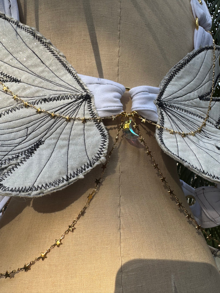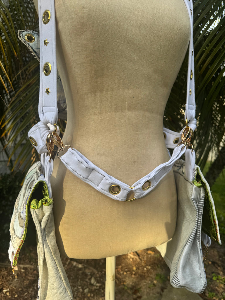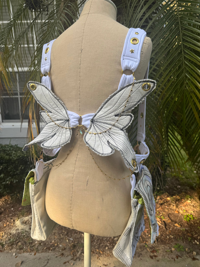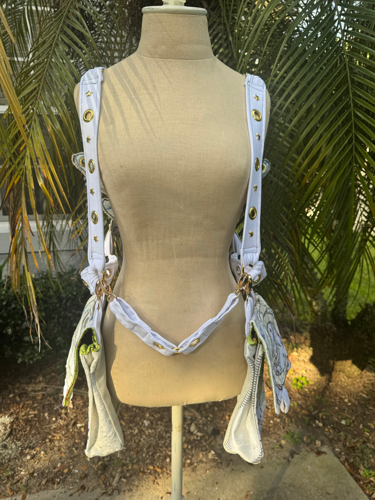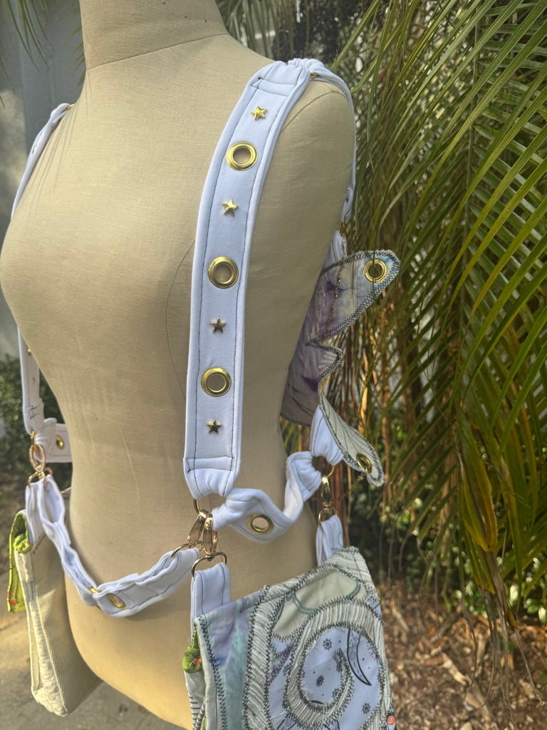 Introducing the FLY HIGH HOLSTER - where functionality meets fashion. This unique shoulder holster features stunning butterfly wings, intricate embellished details and modular cargo pockets for hands-free convenience. These Pockets are fully lined as well as the back of the wings for top to bottom celestial luxury. Remove the pockets or clip on just one for multiple different styles with just one piece! There is a front clip on strap for an extra secure and optional closure. Elevate your style and stay organized with this functional work of art.